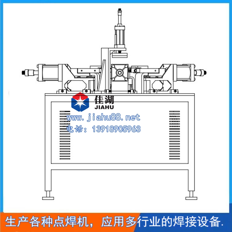 馬達支架三頭焊接機采用三套焊接電源,利用氣動裝置張開的方式夾緊圓柱外殼,確保圓柱體的不變形;支架定位在模具內(nèi),氣缸水平頂進的方式,三個支架同時焊接;