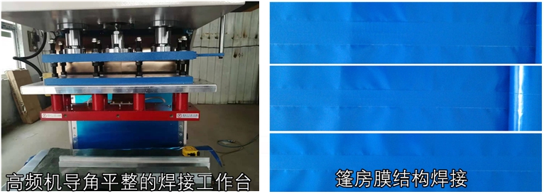適用于各類PVC、PVDF、TPU成分含20%以上膜材料、涂層布膜材料焊接,篷房、帳篷、建筑膜結構、張拉膜、索膜、停車棚(汽車蓬)、水囊、水池、充氣水袋、車棚、PVC夾網布、TPU飛艇、充氣模,沼氣池蓋膜,污水池加蓋膜、紅泥軟體沼氣池、戶外膜結構、PVC涂層布焊接露天帳篷布焊接、PVC圍油欄、膜結構景觀產品的焊接加工,材料表面光滑美觀。通過高周波的加工后,被高頻熔接的材料,表面光滑平整且美觀牢固。