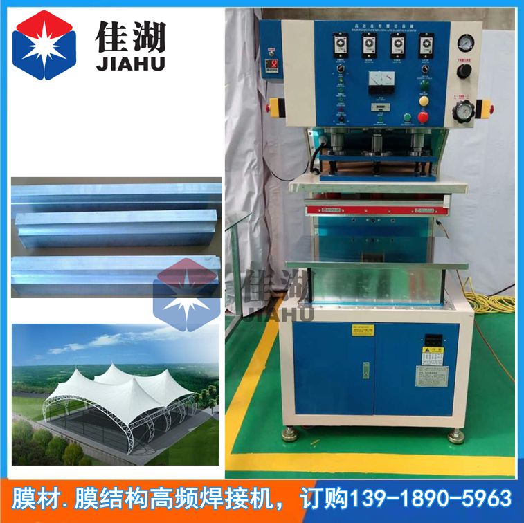 膜材膜結構高頻焊接機適用范圍:適用于PVC篷房、篷布、帳篷、膜材、建筑膜結構、張拉膜、索膜、停車棚(汽車蓬)、體育看臺、PTFE腹筑、ETFE腹建筑、充氣模,沼氣池蓋膜,污水池加蓋膜、紅泥軟體沼氣池、戶外膜結構、PVC涂層布焊接露天帳篷布焊接、氣囊、水囊、水池、軍用水袋、膜結構景觀等高周焊接.