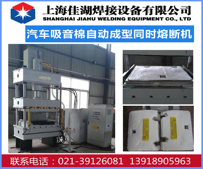 一、汽車吸音棉機械用途: 汽車吸音棉自動同時熔斷機:適用于PETG,遮陽板,雙組份吸音棉,汽車吸音棉PET+PP熔接成型裁斷一次性完成。 二、設(shè)備描述: 該設(shè)備為吸音棉定做。是由左,右自動滑臺進料,自動熔接,切斷,定型,自動退出,工作時通過滑臺輸送材料,進入工模位置,機頭氣缸自動下降,通過延時預(yù)熱,熔接、定型(切斷)、機頭上升、滑臺自動退出,手工取出成品。