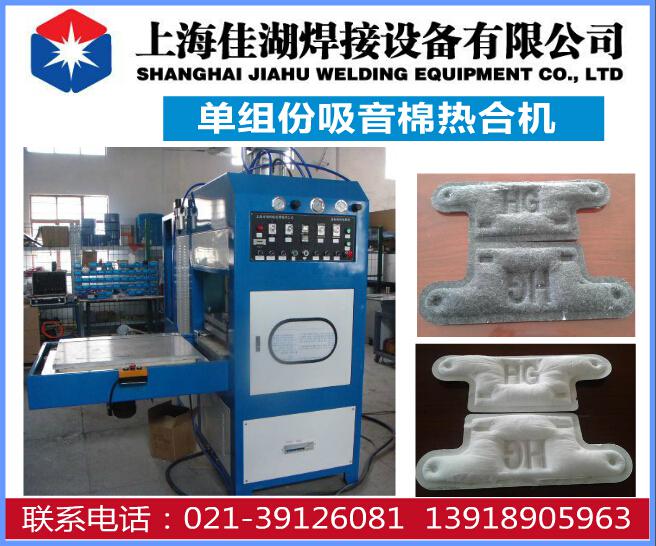 該設備為吸音棉定做。是由左,右自動滑臺進料,自動熔接,切斷,定型,自動退出,工作時通過滑臺輸送材料,進入工模位置,機頭氣缸自動下降,通過延時預熱,熔接、定型(切斷)、機頭上升、滑臺自動退出,手工取出成品。
