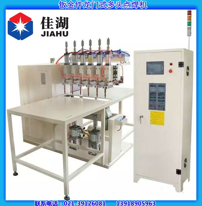 鈑金龍門式多點焊接專科機由龍門式機架、焊接變壓器、氣動傳動裝置,電氣控制系統、冷卻系統及PLC 觸摸屏組成。