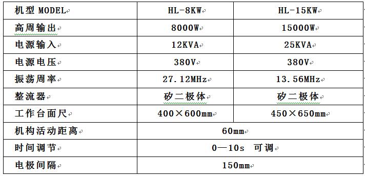 二、EVA環保釣魚防水袋高頻熱合機機械參數: