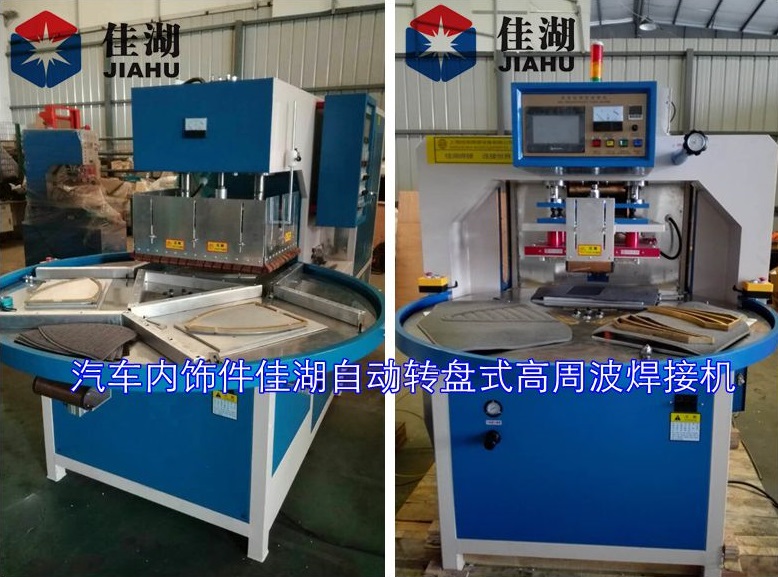 自動轉盤式高頻機可帶機械手自動取料:適用于汽車腳墊/地毯/絲圈腳墊的腳踏皮、PVC防滑墊、皮革耐磨片熱合焊接;以及雙面吸塑泡殼封口包裝,吸塑吊卡封口包裝,雙面紙卡夾吸塑罩熱合封口包裝,也稱為泡殼包裝,高頻熱合包裝,吸塑包裝。機器也可用于一些塑料熔接、PVC熔接、塑膠熔接、真皮壓印等用途。