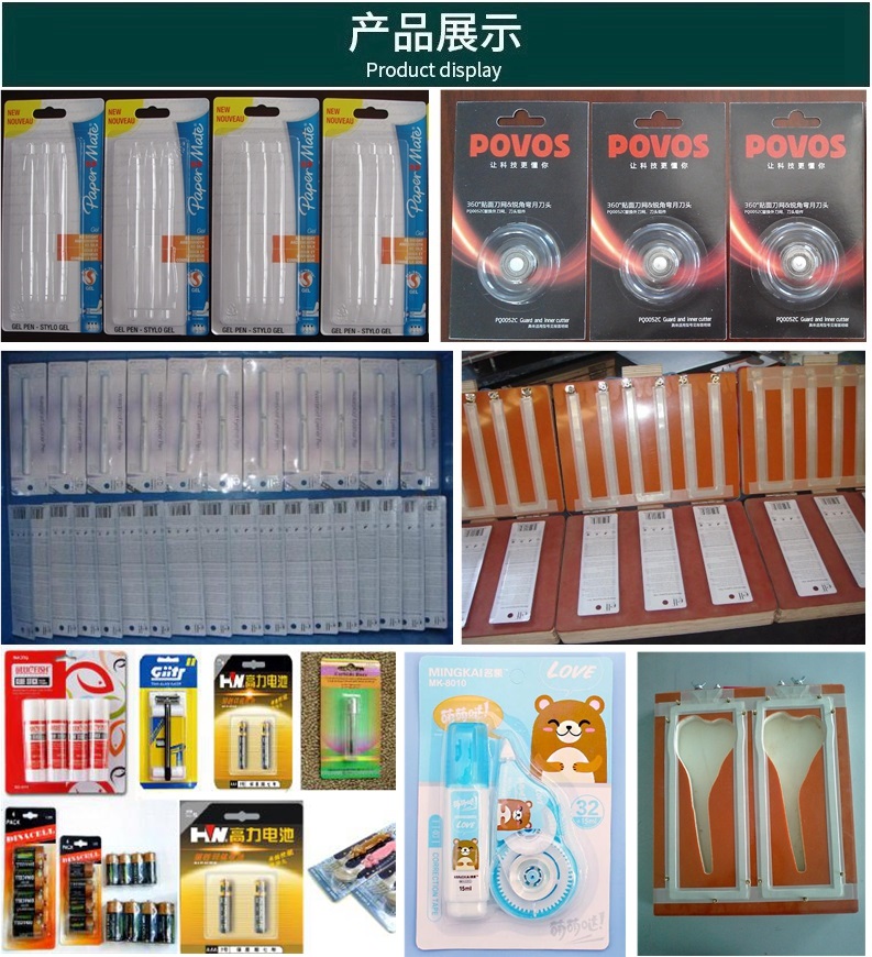 吸塑封口機:本機采用氣動元件驅(qū)動壓板工作,用可調(diào)控電發(fā)熱原理完成PVC、PP、PE 等塑料吸塑成型片材料與紙板封合,適用于各種玩具、雨刮器、文具、文教用品、電池、食品、日用品、小型工具的吸塑封口包裝。