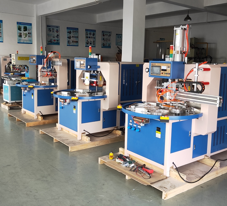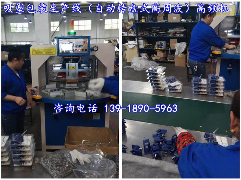 客戶流水線配套生產吸塑包裝采用佳湖多工位自動轉盤式高頻機