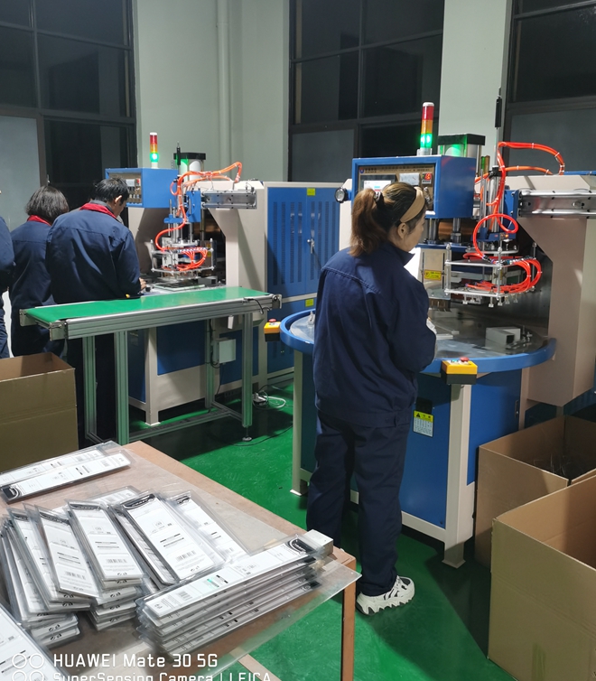 多工位自動轉盤式高頻機有4~8工位,佳湖高頻機有常規標準機型和PLC微電腦控制。可根據客戶要求非標定制PETG環保料熔斷功能和自動放料,可帶機械手自動自動取料等。