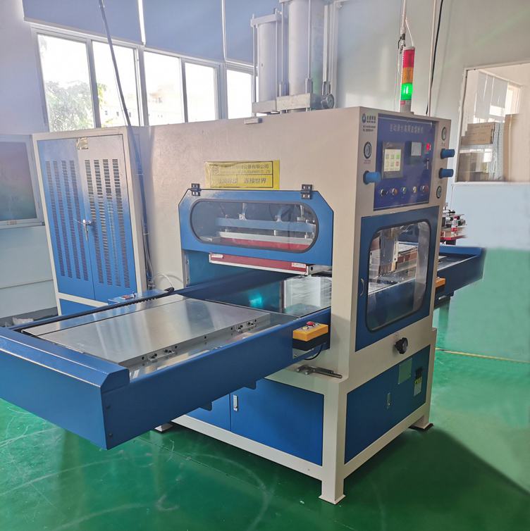高周波熔斷機又叫高周波同步熔斷機、是將APET、PETG、PVC.PET或無紡布等塑膠薄片互粘合,或與涂吸塑油的紙卡進行粘合,同時熔接與切斷,達到一次成型。在模具的壓力下達到熔接和壓花的目的。