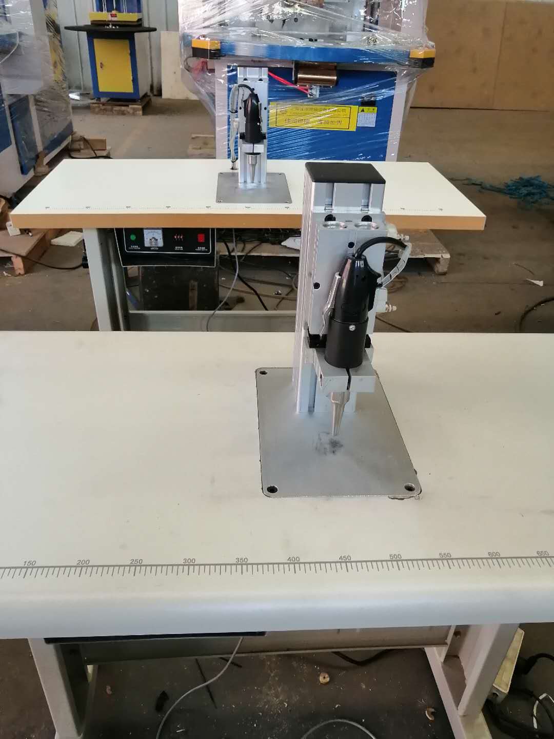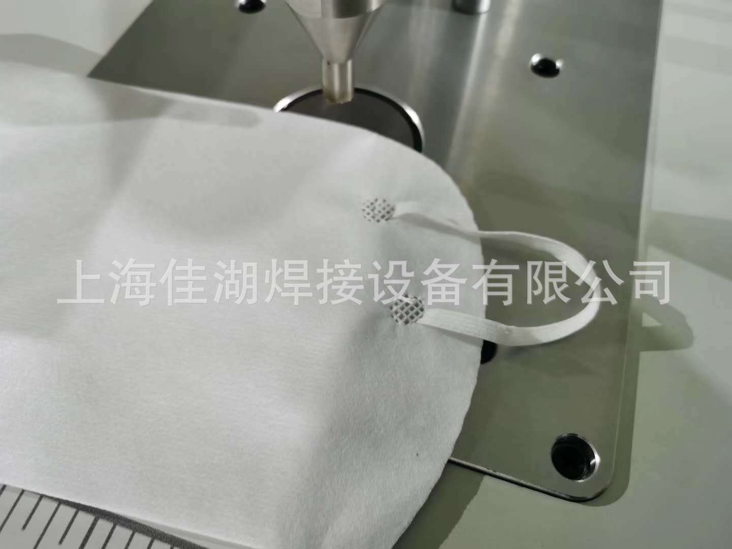 罩耳帶點焊機用途: 口罩耳帶點焊機將耳帶融合于口罩本體兩側,進而完成耳帶式口罩成品,只需一名工作人員將口罩片置于超聲波發生器的頭上,后將耳帶放在口罩片上,腳踏踏板使氣缸向下運動,焊住耳帶和口罩片. 超聲波口罩耳帶焊接機使用簡單焊接速度快,耳帶焊接牢固美觀。