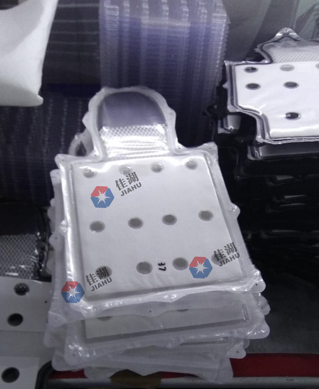 佳湖高周波熔斷機(jī) 汽車內(nèi)飾高周波熔斷機(jī) 汽車座椅通風(fēng)袋高周波同步熔斷機(jī)使用現(xiàn)場(chǎng)