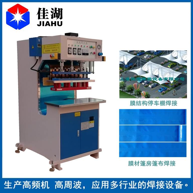 膜材專用焊接機主要用于:停車棚、膜結構、膜結構景觀棚、膜結構看臺、推拉式雨棚、電動推拉式雨棚、張拉膜、污水池膜、充氣膜、電動車停車棚、PVC/TPU膜材、篷房、帳篷、建筑膜結構、戶外膜結構、露天帳篷布張拉膜、PVC夾網布、刀刮布等的焊接加工,戶外廣告布,卡車篷布,TPU氣囊、TPU飛艇、車罐衣,均可采用高周波膜結構的焊接加工,焊接好的材料表面光滑平整且牢固美觀。