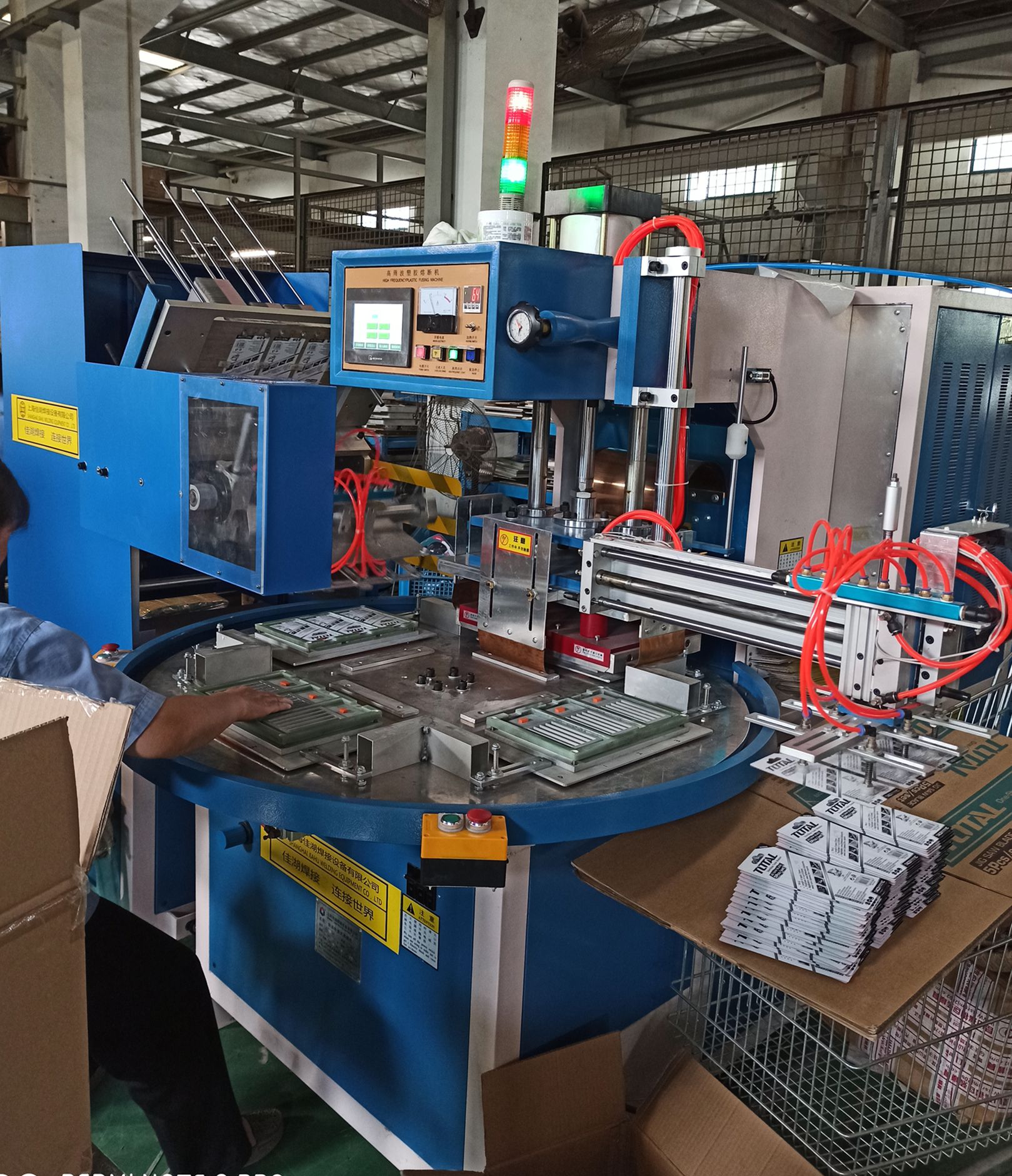 4、全自動轉盤式高周波機自帶機械手自帶取料。