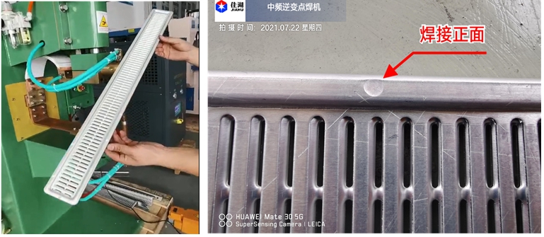 中頻機可焊接鋁板點焊、鋁合金板、低碳鋼板、不銹鋼板、鍍鋅板、冷軋板、螺母螺栓點凸焊、電熱水器點焊,空調背板點焊,不銹鋼帶點焊,電梯門板焊接,線材的點焊、多點凸焊,以及高低壓電氣行業銅線的電阻釬焊、點焊,銀點和銅板的釬焊、復合銀點焊接等。鋁板焊接見圖
